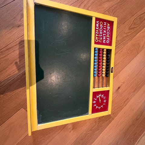 Tavle, En retro Brio tavle. Med ur, tal og bogstaver.