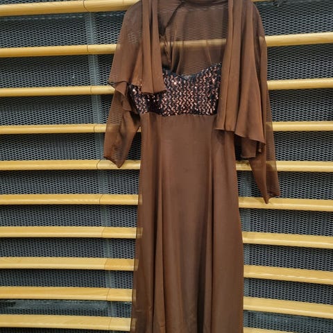 Festkjole, Vera Mont/Elinette, str. M, Brun/beige, Top i silke, God men brugt, Flot lang nederdel i havfruefacon