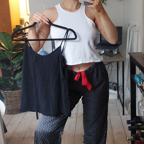 Begge passer str large, den hvide top ses på en medium