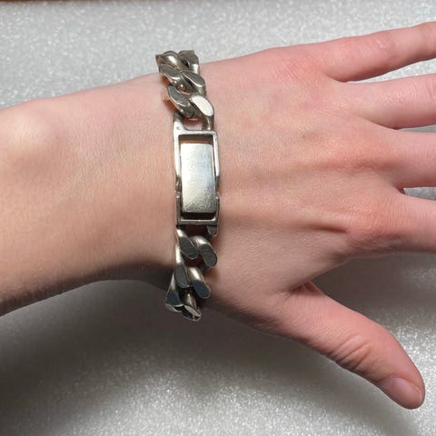 Armbånd, sølv, Panserarmbånd, Kraftigt sølv panserarmbånd i 925 sterlingsølv. Kraftig kliklås med haspe. 42-46 gram. B 10 mm/3 50 mm. 19,5 cm / 21 cm/22cm og 23 cm længder. Kun et stk af hver. Helt nye. Har også en halskæde på 60 cm. 3000 le. Faktura udskrives. Prisen er fast .