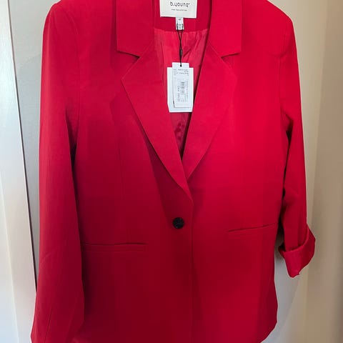 Blandet tøj, Boohoo, Jensen, hm mm, str. S, God men brugt, Blandet tøj str. s. Boohoo cowboybukser str. 34, helt ny Gestuz blazer str. 34, kjole, nederdel, skjorte, trøjer, shorts, toppe, jensen, hm, John Galt mm. 11 dele samlet 150kr