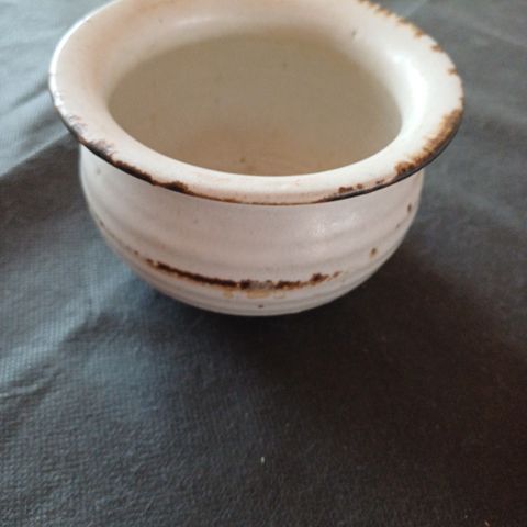 Den er fra 1970'erne. I super stand. Skålen har hank i hver side.