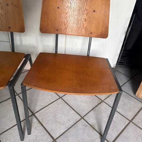 Stole, American Dinerstole, American Dinerstole. Retro fra 80erne. 2 stk med kromstel og skaisæde og ryg (med skumgummifyld). Lille skade på eet hjørne på begge stole. Siddehøjde 44cm. Bredde 39cm. Totalhøjde 76cm. Samlet pris for 2stk kr750 (p)