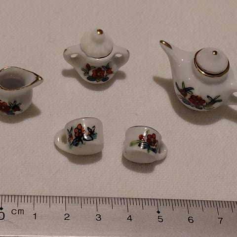 Dukkehus-møbler, Kaffestel / testel, Super sødt dukke porcelæn kaffestel / testel fra 1950-1960-erne.