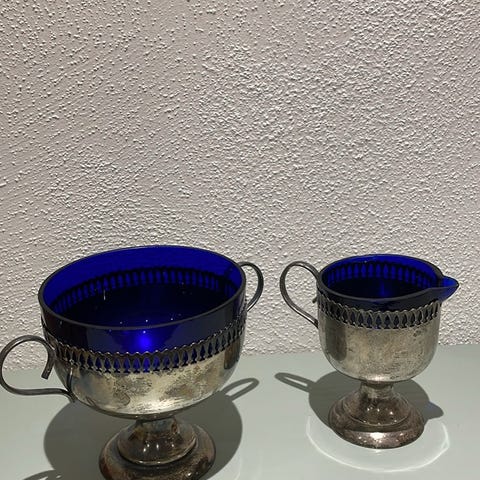 Vintage sølvplet Henniger sukkerskål og flødekande