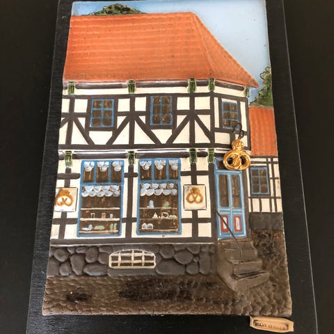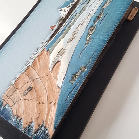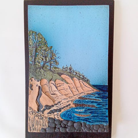Relieffet er på den originale krydsfiner plade. Pladen måler 18 x 26 cm, relieffet måler ca. 15 x 20 cm.