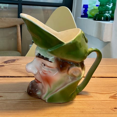 Toby-kander har en lang og farverig historie i britisk keramik, med rødder tilbage til det 18. århundrede. De forestiller typisk en jovial, siddende mand med ølkrus i hånden – en hyldest til Harry Elwes, også kendt som Toby Philpot, en legendarisk engelsk drukkenbolt, som ifølge folkesagnet skulle have drukket over 7.000 liter øl i sin levetid. Figuren blev et populært motiv i engelsk fajance og porcelæn, og Toby-kanden blev et ikonisk samlerobjekt.