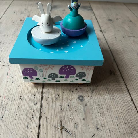 Spilledåse, Bambam, Spilledåsen er lavet af træ og man trækker den op i bunden. Den spiller en fin melodi alt imens figurerne drejer rundt på spilledåsen. Figurerne har magneter i bunden og man sætter dem på spilledåsen og når melodien spiller så drejer de rundt i ring.