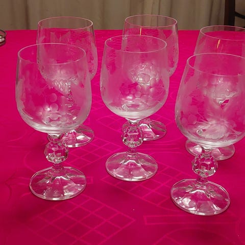 Glas, Vinglas, Krystal vinglas: 7 store og 8 små.