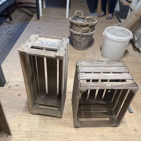 Vintage kasser. Flotte gamle kasser brugt til opsamling af kartofler i 1960’erne.