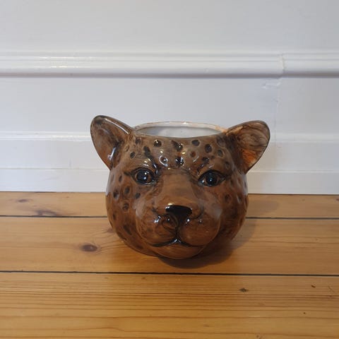 Porcelæn, Urtepotte, Velholdt urtepotte på løveføder - tysk -16 cm høj- diam er 13 cm .