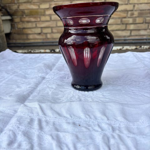 Retro blå mønsterslebet Bøhmisk glasvase, H 26 cm