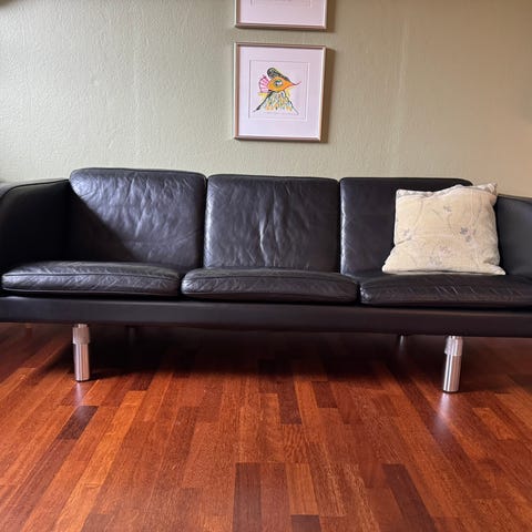Sofa, læder, 3 pers. , J.Ingvard Jensen, Dansk design 3 Per. Sofa med lænestol samt skammel, farve okse brun/ mørke brun.