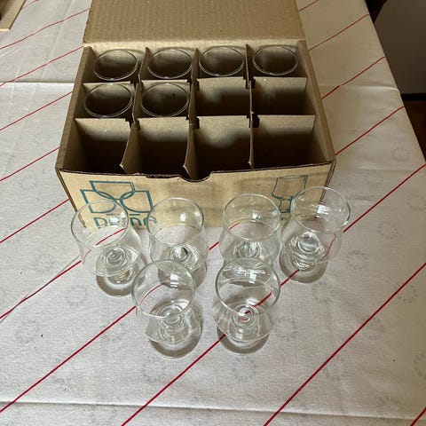 Glas, Dessertskåle, FRANCE, Dessertskåle FRANCE i kraftigt faceret krystalglas højde 8cm skåldiameter foroven 10,5cm 12 stk vægt pr stk 200gram uden fejl aldrig brugt samlet fast pris kr480. Lbagvfrboks