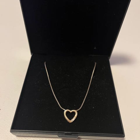 Halskæde af forgyldt sølv med hjerteled. Længde 88 cm.