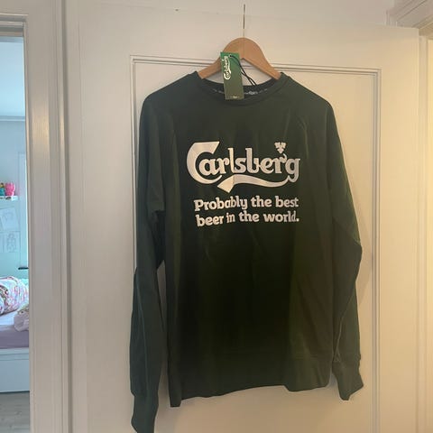 Hættetrøje, Carlsberg, str. M, Grøn, Bomuld, Næsten som ny, Original Carlsberg trøje med (probably the best beer in the world) branding.