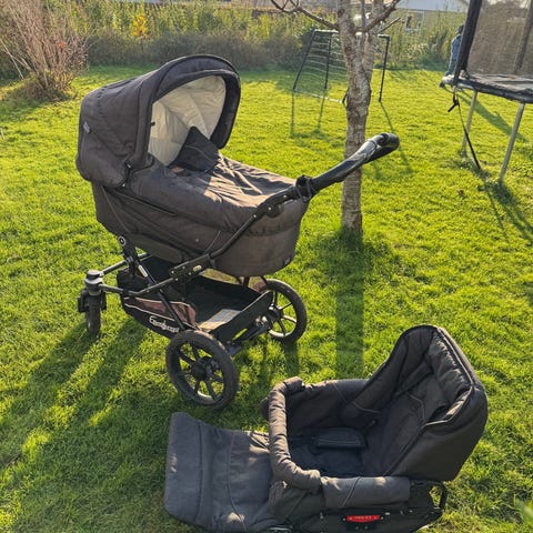 Vognen har brugsspor efter brug til 2 børn, men er i fin stand og kan sagtens anvendes til et barn eller to mere.