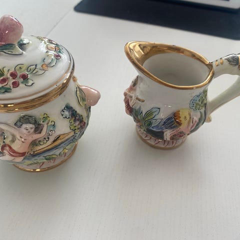 Peberkværn og salt dåse, Fajance, Capodimonte