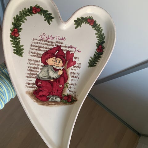 Klarborg fad aflangt, Etly Klarborg fad 2 hjerter i takt måler ca 36 x 13 cm. Stand perfekt.