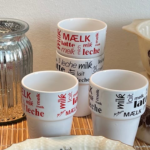 Porcelæn, Krus, John Tams, Sort, hvidt retrokrus fra England af John Tams med hund og kat