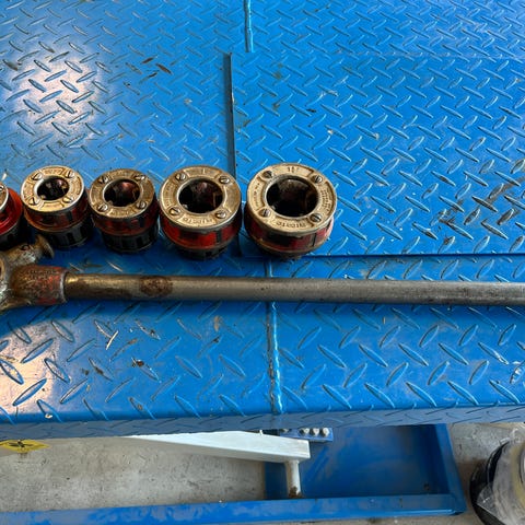 RIDGID gevindstangsklipper med tilhørende 8 mm. bakker.