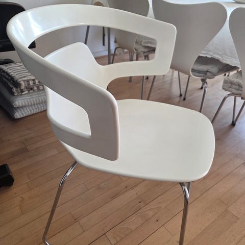 Plexiglas stol med armlæn, ?, Fint stol i acryl plexiglas?