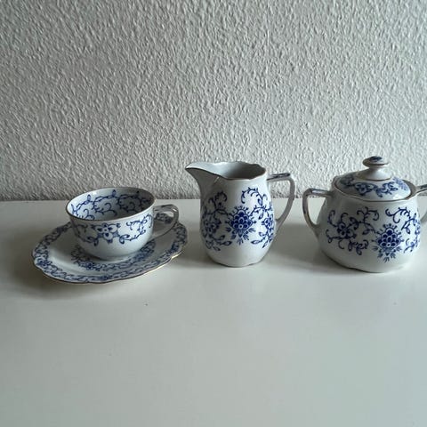 Porcelæn, Kaffestel med side tallerken, Westerling Roslau Bavaria Germany, Flot design fra den kendte tyske porcelænsfabrikant. Modellen er af ældre dato men trods sin alder fremstår det stadig elegant og stilfuldt. 1 sæt med kaffekop, underkop og sidetallerken koster 20kr. Et fund til prisen.