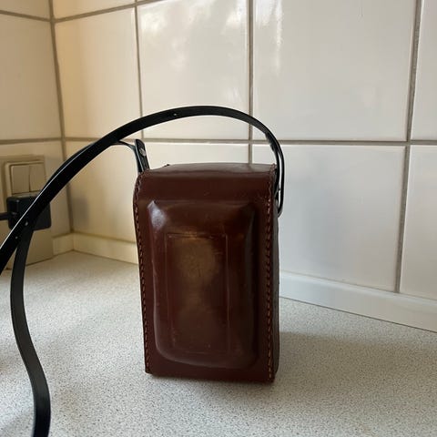 Meopta vintage smalfilmskamera fra 1950’erne i læderetui med skulderrem