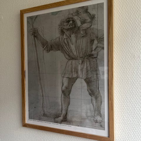 Med fidel kan man klippe teksten fra og indramme selve billedet som har mål 46 gange53 cm.