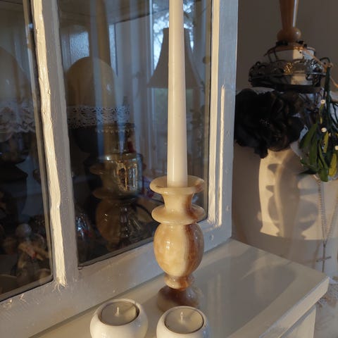 2marmor stager til kertelys/juletræslys, 3 små messingskåle, Blommingville