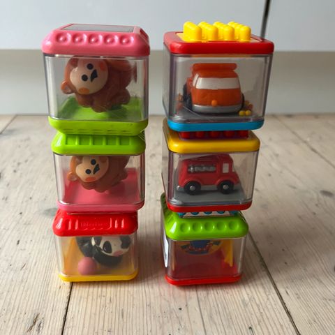 Klodsvogn, BR, andet babylegetøj, Fin klodsvogn, hvor der er tal, bogstaver og billeder på alle 6 sider af klodserne. Ca. Mål 23 x 24 cm.