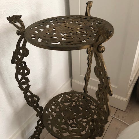 Lampe borde med lamper, Metal, Meget flotte lamper og lampeborde. 2 stk. metal-borde med udsmykning og glas plade. Lamperne er også i metal, elegante med prismer og marmorrering-udsmykning. Sælges samlet. Er åben for et seriøst bud.