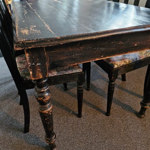 Spisebord og stole + vitrineskab, Antik, Vintage spisebord med 6 stole plus vitrine skab