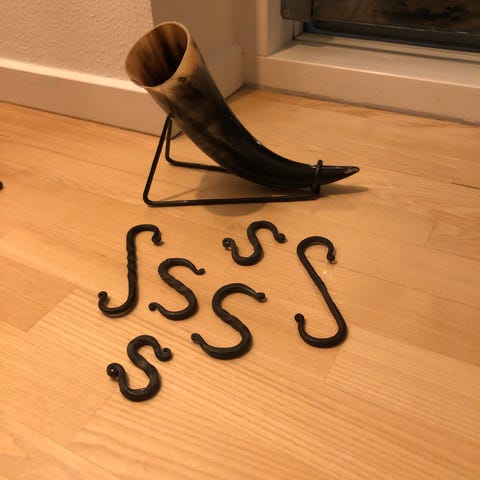 Tin, Stort viking-drikkehorn med låg, norsk tin, ca. 23,5 høj, 22,5 cm brede, ca. 8 x 6 cm oval top.