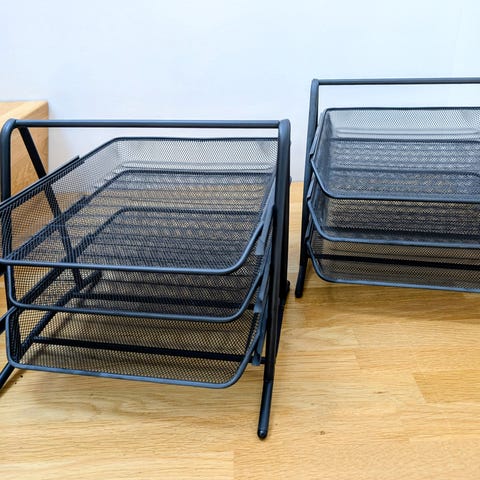 Brevbakke til bordet., Sort brevbakke til A4 papir - smuk at stille på skrivebordet, hjemmekontoret.