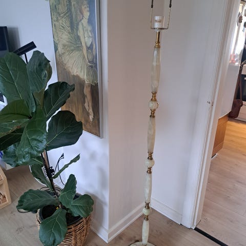Gulvlampe, Messing vintage gulvlampe med satin lampeskærm