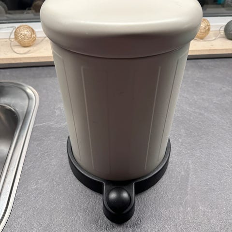 Med indvendig spand i plast, der gør den let at tømme og rengøre.