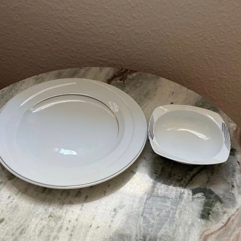 Flot hvidglasseret stentøj/porcelæn