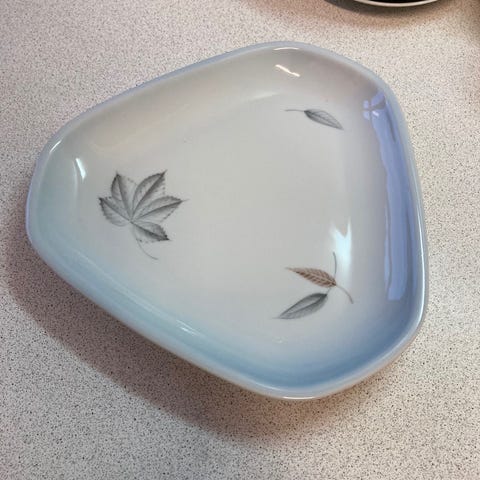To hjerte/bladformet fade nr. 199, 27 cm i diameter.