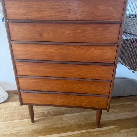Kommode, palisander, b: 61 d: 43 h: 68, 1 stk Omann Junior kommode med 4 skuffer og er i Palisander fra ca 1960'erne. B:61cm. D:43cm. H:68cm. Kommode har ridser i bunden højre side på siden samt nederste skuffe i bunden, ellers en super lækker lille kommode. Kommode er ikke ny og sælges derfor som brugt, derfor kan der forekomme ridser, slid og skrammer. Prisen er kun 800kr.