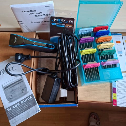 Oster A5 2-speed Clipper sæt. Indeholder fire klinger, 3 stk 15 og 1 stk 40., designet til præcis klipning. Desuden forlængerledning, olie og børste.