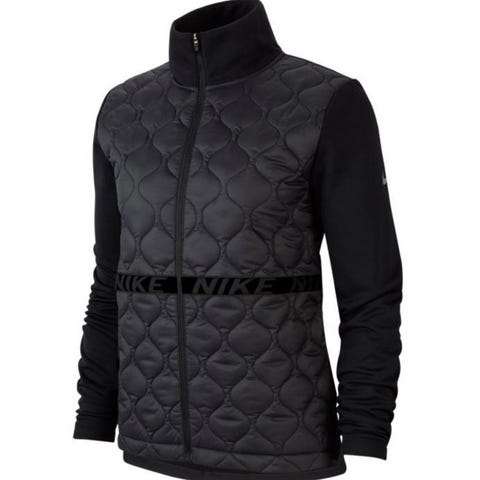 Løbetøj, Løbe jakke, Nike, str. XL, Pink løbe jakke fra Nike - Dri-Fit - pink og grå - med lynlås - str XL - måler 66 lang - 70 cm ærmer - 50 cm bryst - reflekser - lomme bagpå - brugt men stadig funktionel og fin stand.