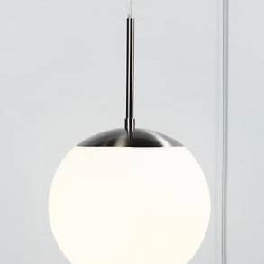 Sæt med fire pendellamper i krom med dekorative glaskupler. Lamperne har en moderne dråbeformet design med glaskupler, der skaber et diffust lys. Velegnet til ophængning over spisebord eller køkkenø.