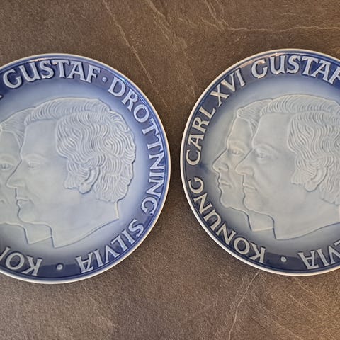 Sølvbryllup platte, Kgl, 1960, Platte i anledning af Kong Frederik og Dronning Ingrids sølvbryllup i 1960. Er 21,5 cm i dia og i 1. sortering. Er I hel stand og uden revner, men har små ridser fra brugsspor. Kr 80.