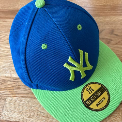 Kasket, New York Yankees, str. 60±5 cm, Sort og rød, God men brugt, Med velcrolukning.
