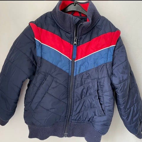 vatteret jakke med hætte, lynlås, lommer og reflekterende detaljer, i fin stand. Kan sendes.
