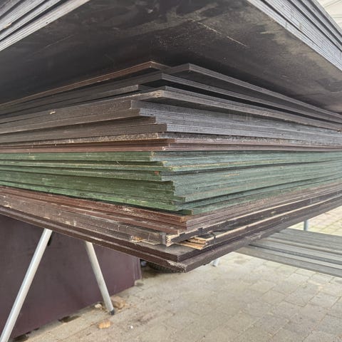 Bambus plader, Carboniseret bambus krydsfiner. 125kr / stk. 52 plader + stumper i alt. samlet pris 4.500 kr. Koster over 400 kr. stk. på diverse hjemmesider.