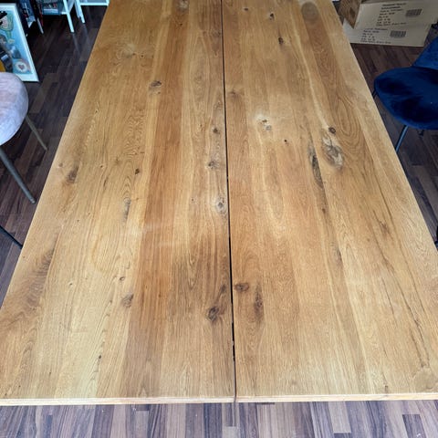 Bordet overfladeslibes og olieres inden salg.
