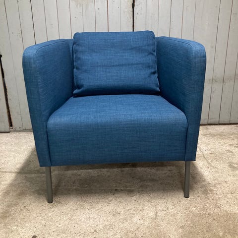 Lænestol, stof, Ikea, Ekerö i mørkeblå, fra Ikea. Rigtig fin stand. Kan afhentes på Christianshavn i København.