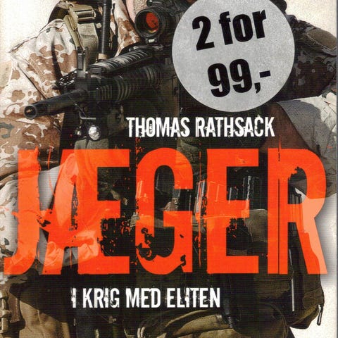 Jæger - I krig med eliten, Thomas Rathsack, genre: biografi, Hæftet udgave fra 2009 i super stand, som ny bog.